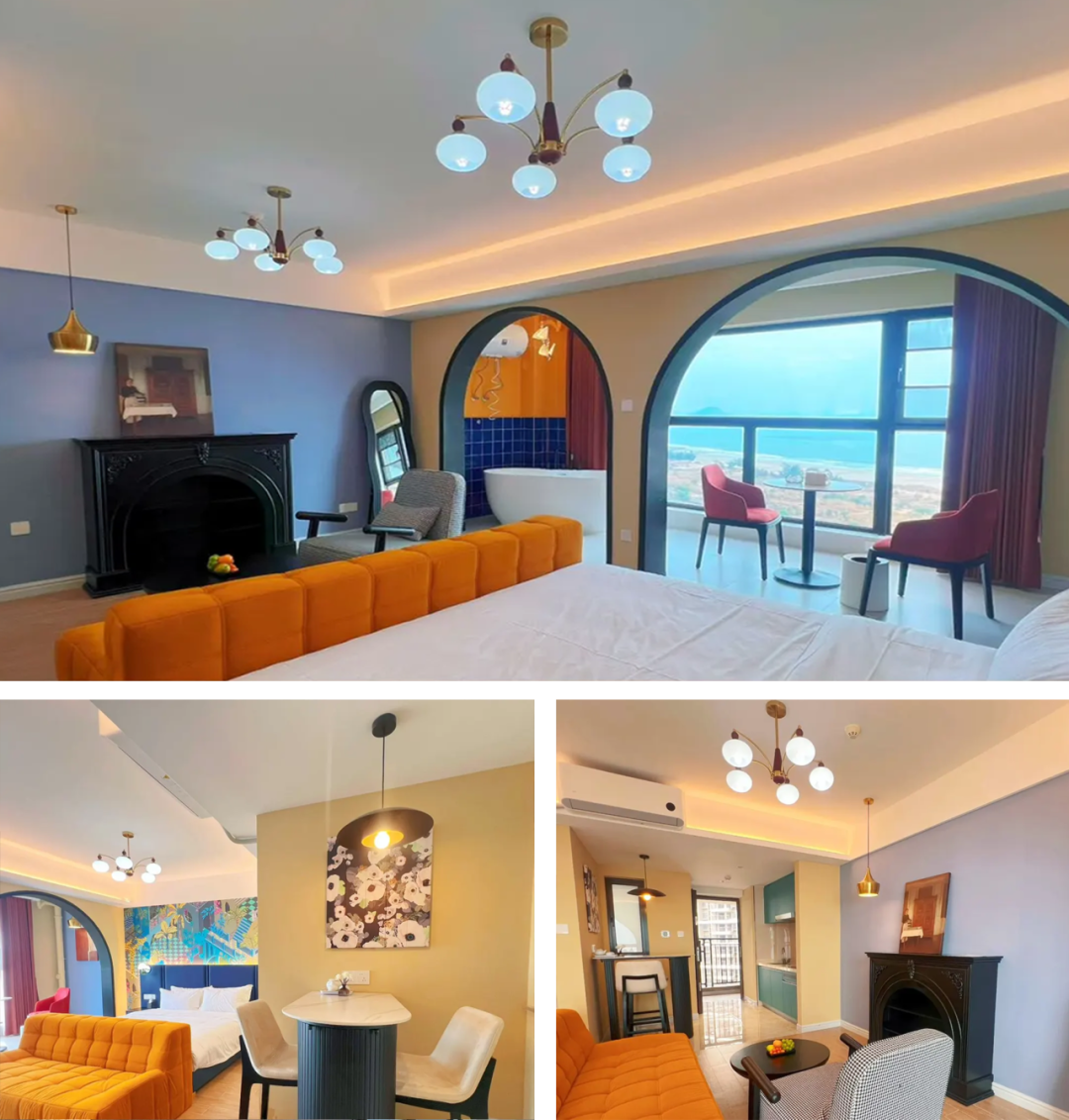 设计师主题全海景房:约50㎡,1张1.8*2m大床房(主题房型有:2312南洋绮梦、 2313蓝月浮梦 、2314绿屿秘境、 3313时光窖藏 、3314左岸甜梦)