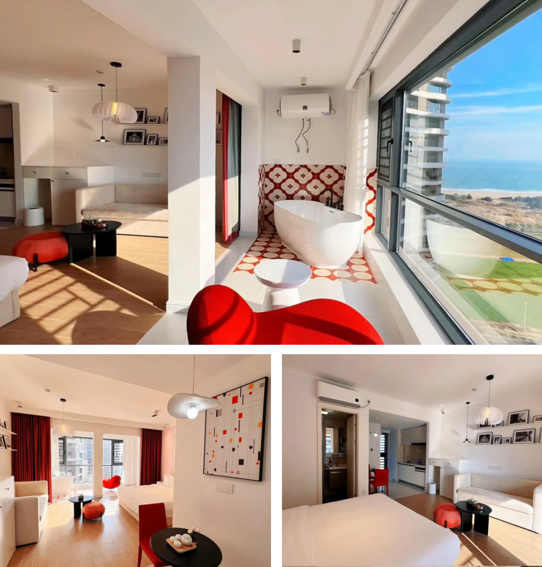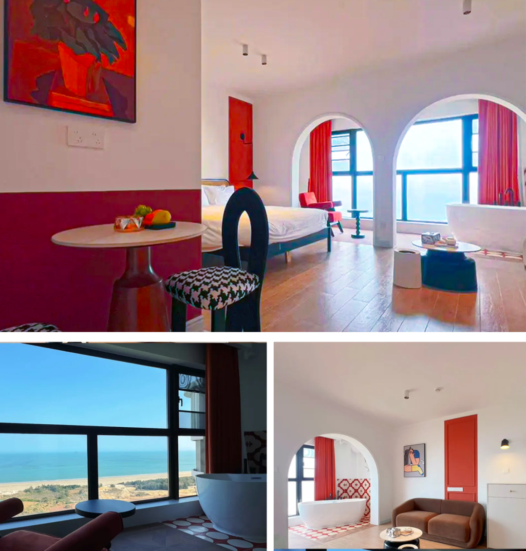1、房型介绍:设计师主题海景房:约50㎡,1张1.8*2m大床房