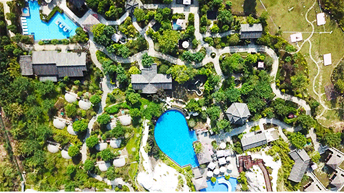 共计35亩的室外露天温泉区还划分出了 6大闽式特色泡池区,设有大小不一、不同功效的52个温泉泡池供顾客浸泡。