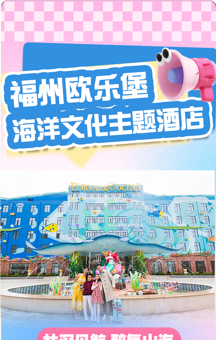 【周末不加价】677元起抢福州欧乐堡海洋主题酒店2天1夜!水手双床房~三床房~冰雪主题家庭房~珊瑚主题~森林主题树屋可选~享自助早餐+海洋世界+童话乐园~一站式畅玩双园!